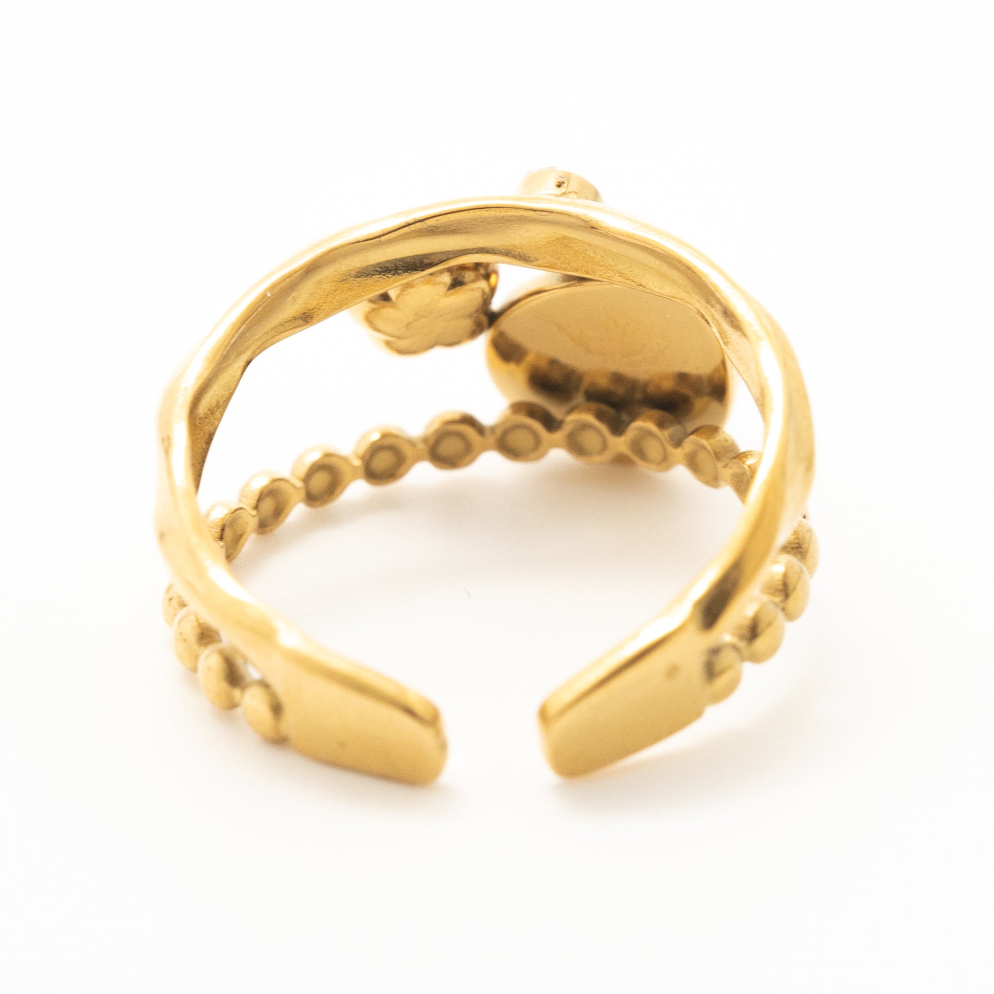 Bague dorée double anneau pierre rose détails floraux – acier inoxydable waterproof