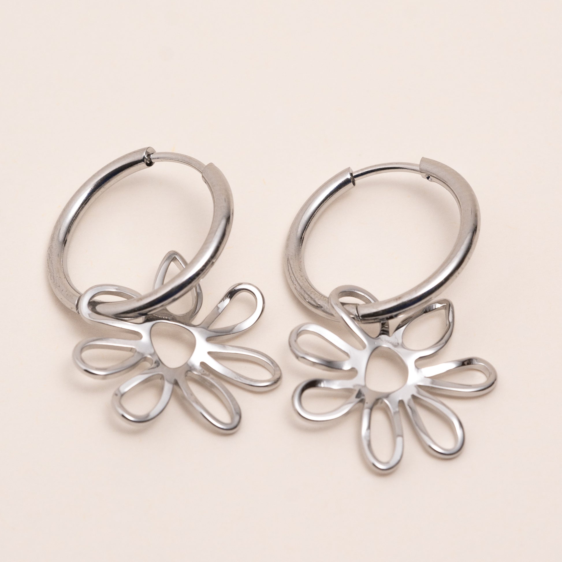 Boucles d'oreilles argentées fleur – acier inoxydable