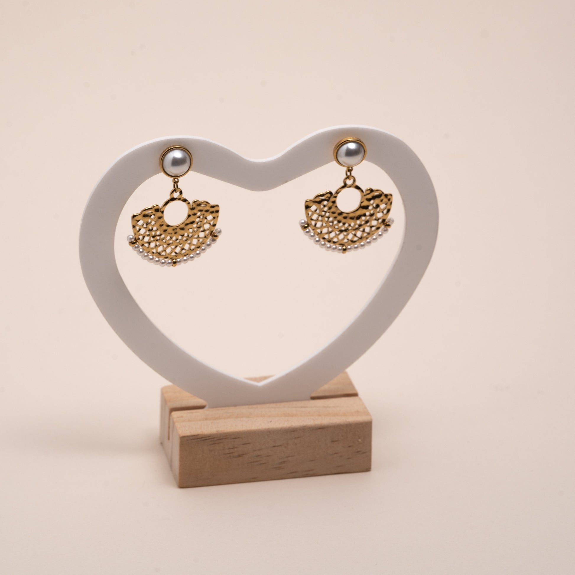 Boucles d'oreilles dorées perles blanches – acier inoxydable