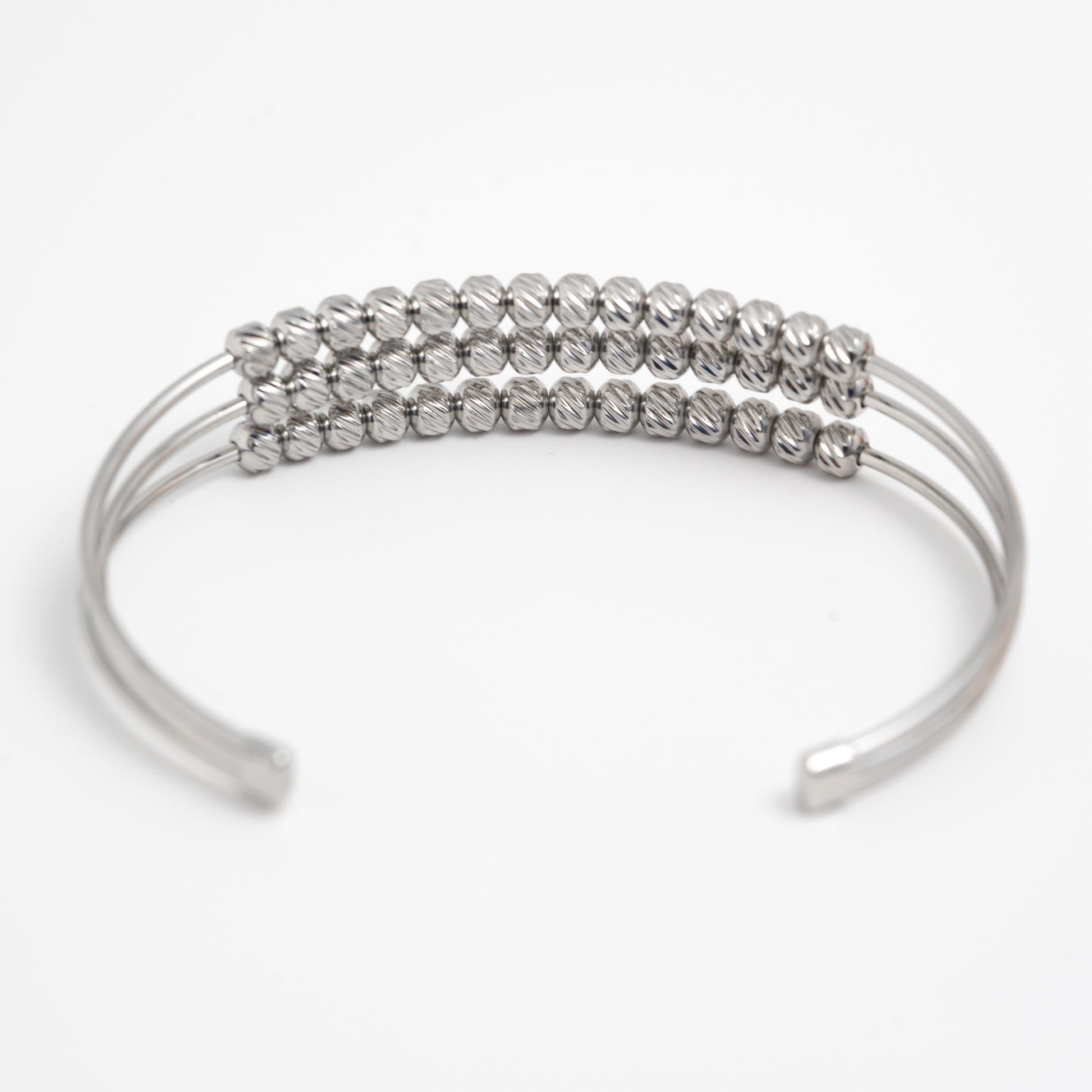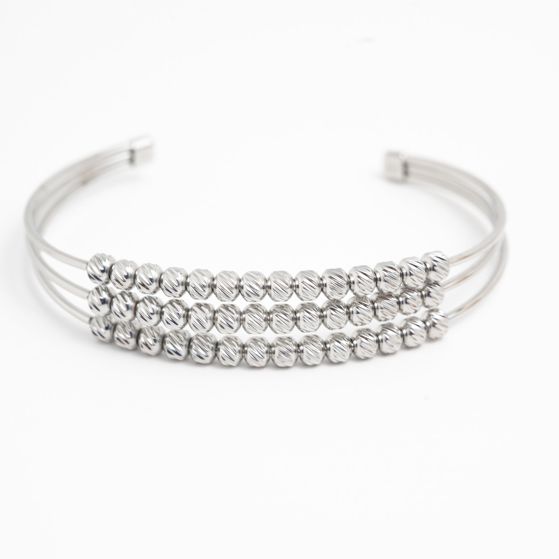 manchette élégante avec 3 rangées de boules argentées . Bijou tendance et intemporel en acier inoxydable. Livraison rapide en Europe.